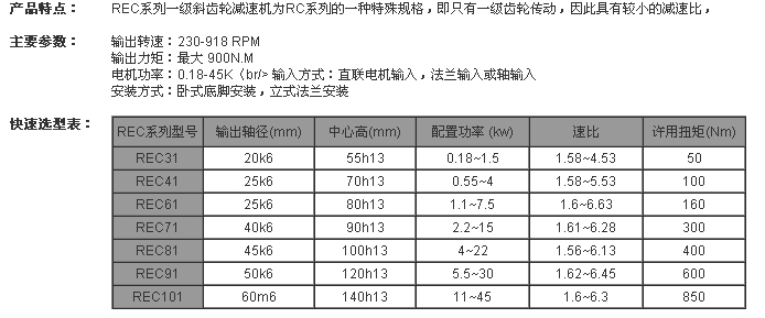 REC31,REC41,REC61,REC71,RECL81,RECL91,RECL101,RECW31,RECW41,RECW61,一级斜齿轮减速机
