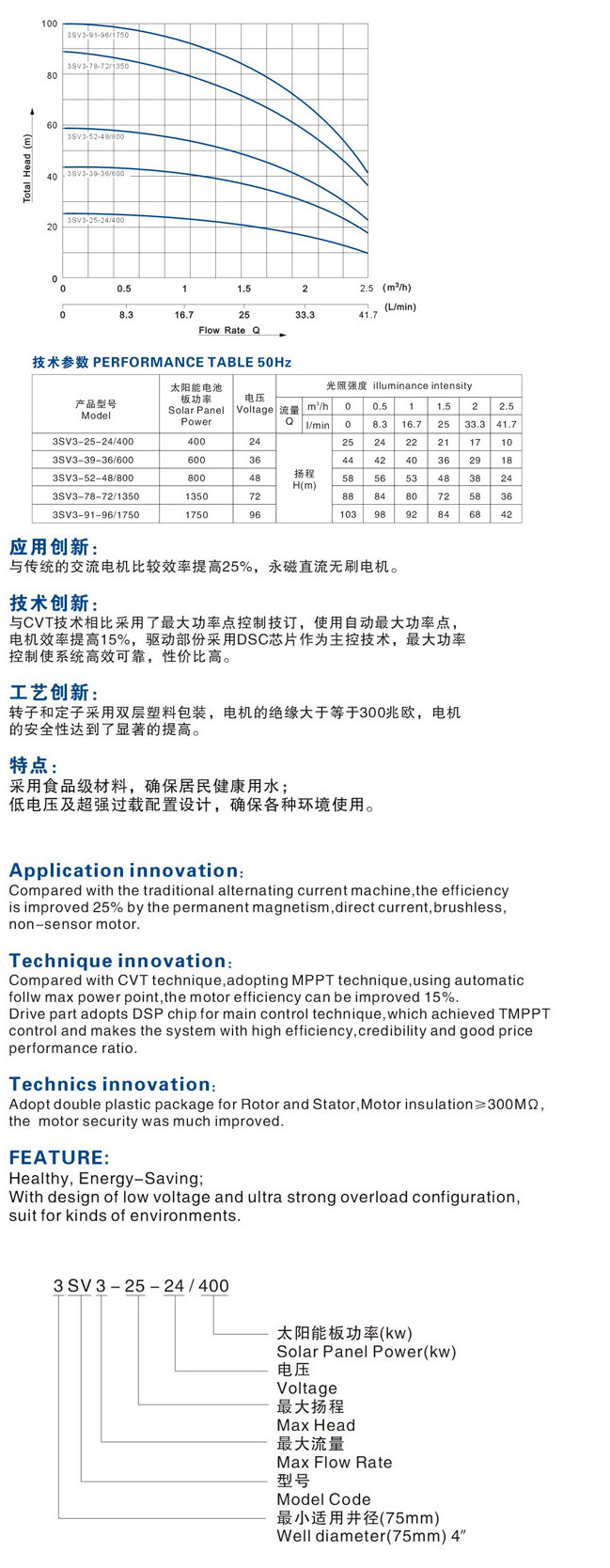3SV3-25-24/400,3SV3-39-36/600,3SV3-52-48/800,3SV3-78-72/1350,3SV3-91-96/1750,太阳能井用深井泵