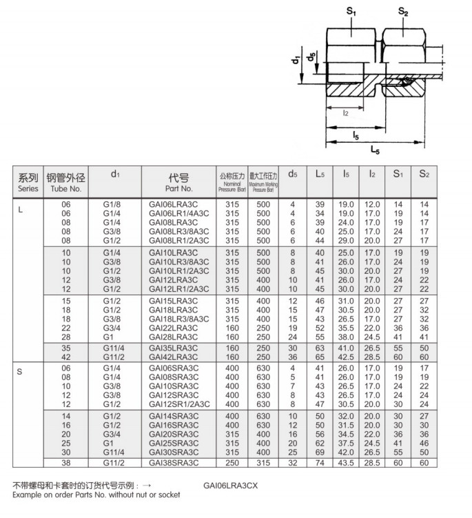 GAI06LRA3C,GAI08LRA3C,GAI10LRA3C,GAI12SRA3C,GAI14SRA3C,直通内螺纹接头