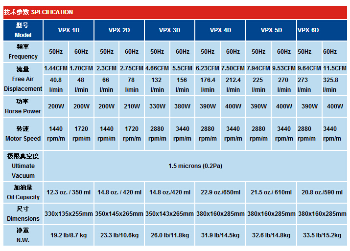 VPX-1D,VPX-2D,VPX-3D,VPX-4D,VPX-5D,VPX-6D,双级真空泵