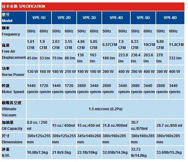VPE-1D,VPE-2D,VPE-3D,VPE-4D,VPE-5D,VPE-6D,双级真空泵