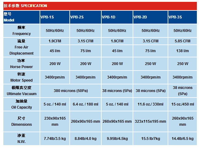 VPB-1S,VPB-2S,VPB-1D,VPB-2D,VPB-3S,单级真空泵