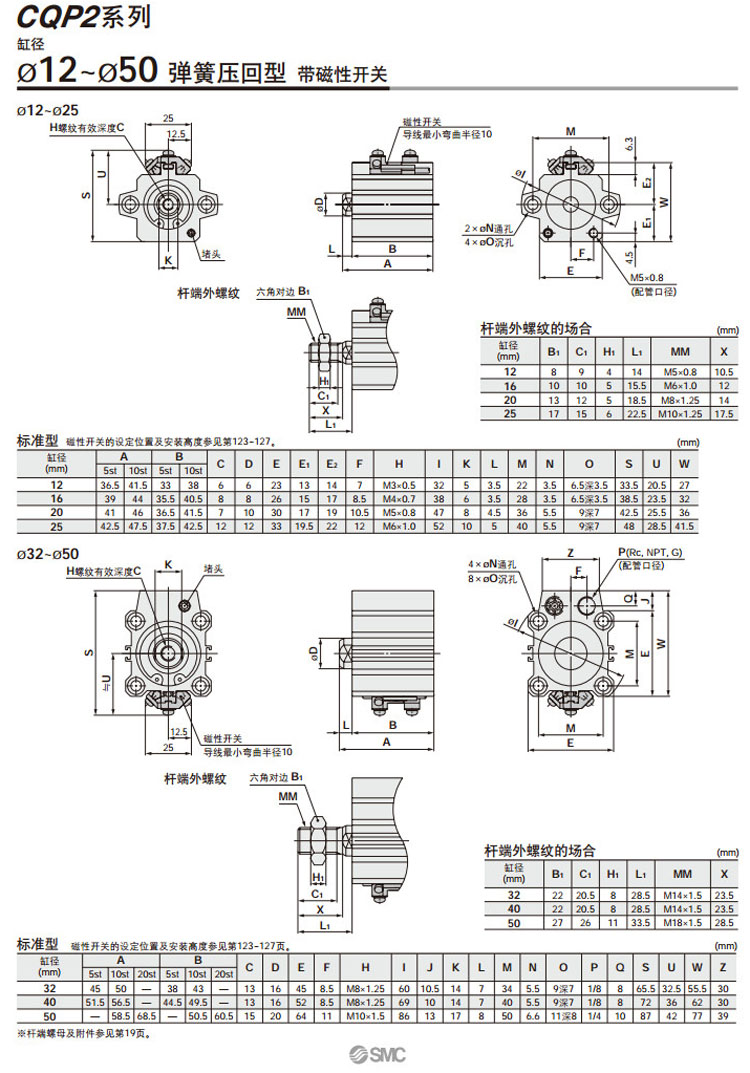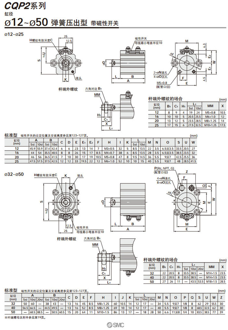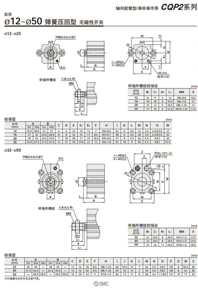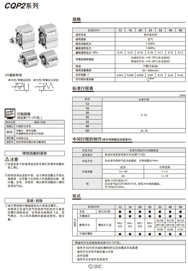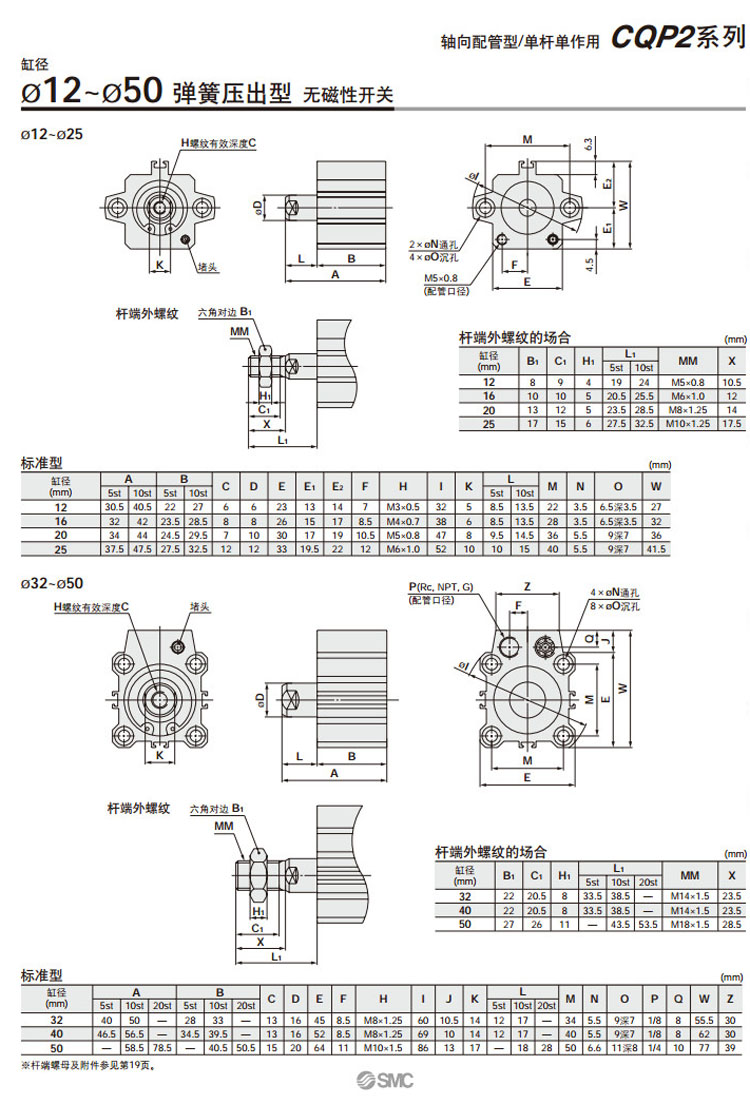 CQP2B12-5S,CQP2BH20-5S,CDQP2B12-5S,CDQP2BH20-5S,CQP2B12-10T,CQP2BH20-10T,SMC轴向配管型气缸