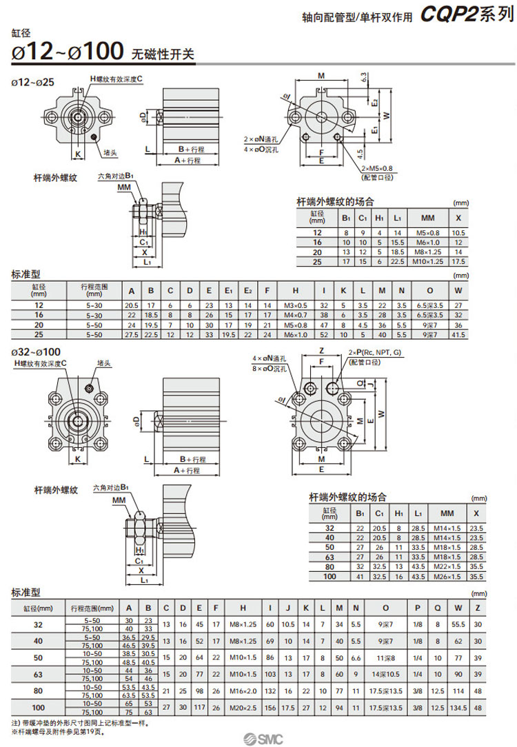 CDQP2BH100-75D,CDQP2BH100-100D,CDQP2BH100-35D,CDQP2BH100-40D,CDQP2BH100-45D,CDQP2BH100-50D,SMC轴向配管型气缸