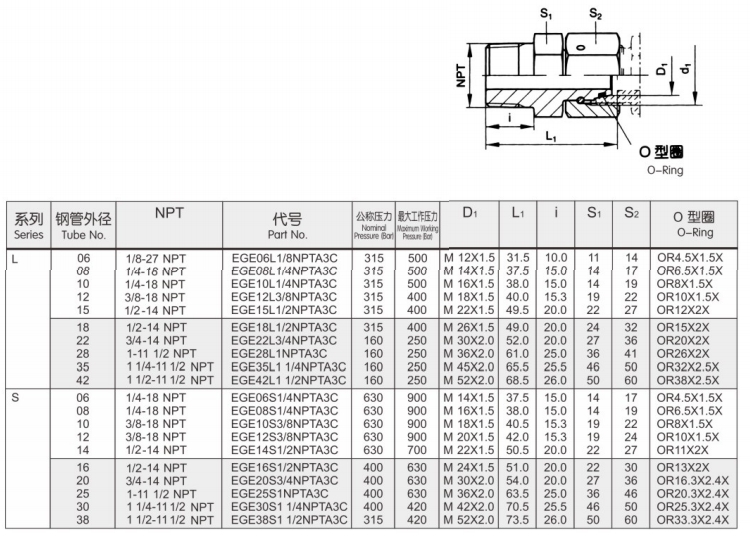 EGE06L1/8NPTA3C,EGE08L1/4NPTA3C,EGE06S1/4NPTA3C,EGE10S3/8NPTA3C,直通组合接头