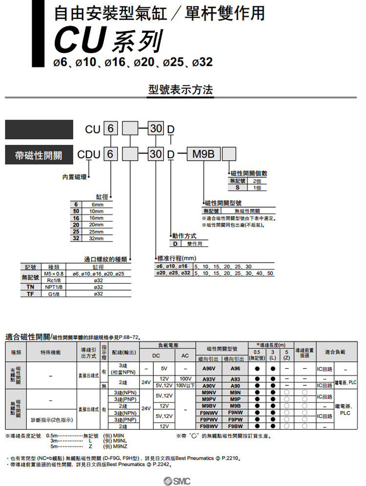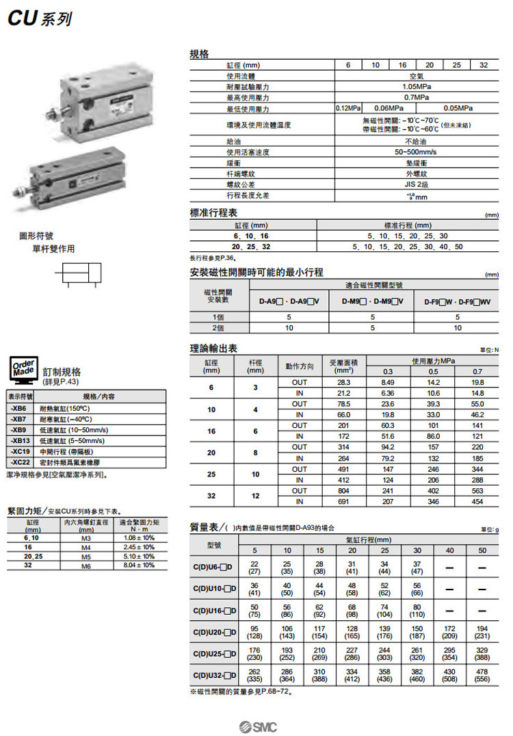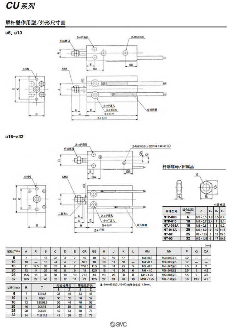 CU6-5,CU10-5,CU16-5,CU20-5,CU25-5,CU32-5,CDU6-5,CDU10-5,CDU16-5,CDU20-5,CDU20-5,CDU32-5,SMC自由安装型气缸