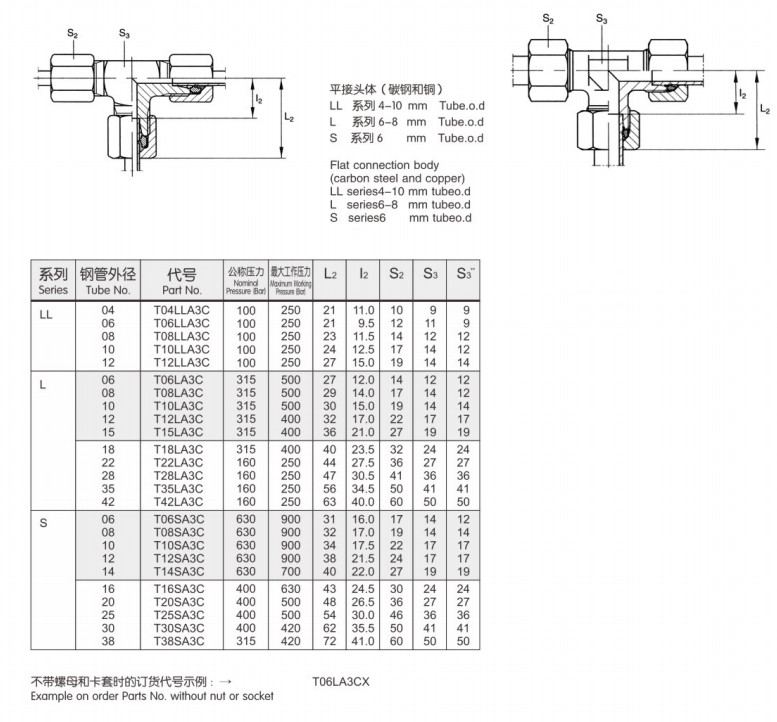 T04LLA3C,T06LLA3C,T06LA3C,T08LA3C,T06SA3C,T08SA3C,三通接头