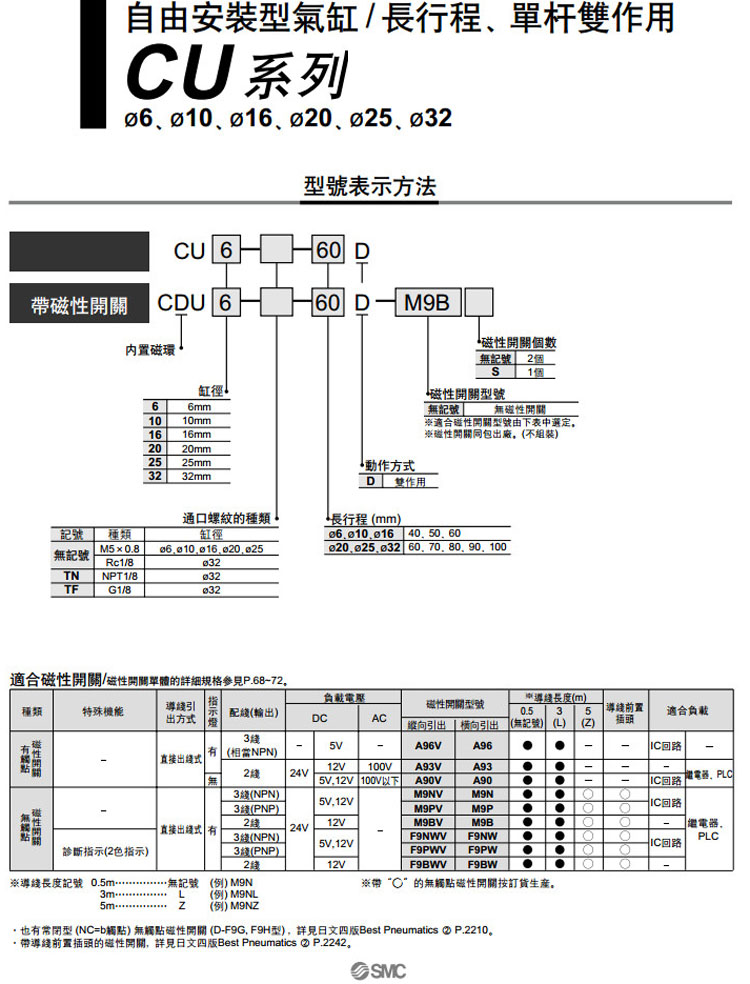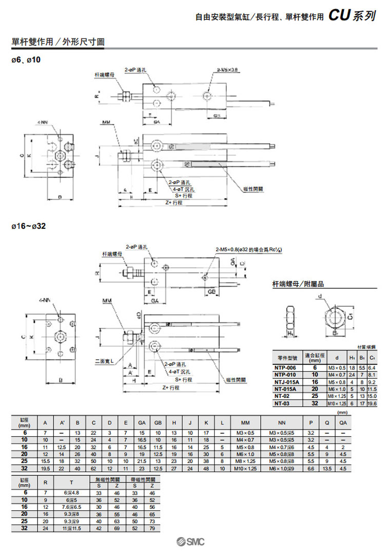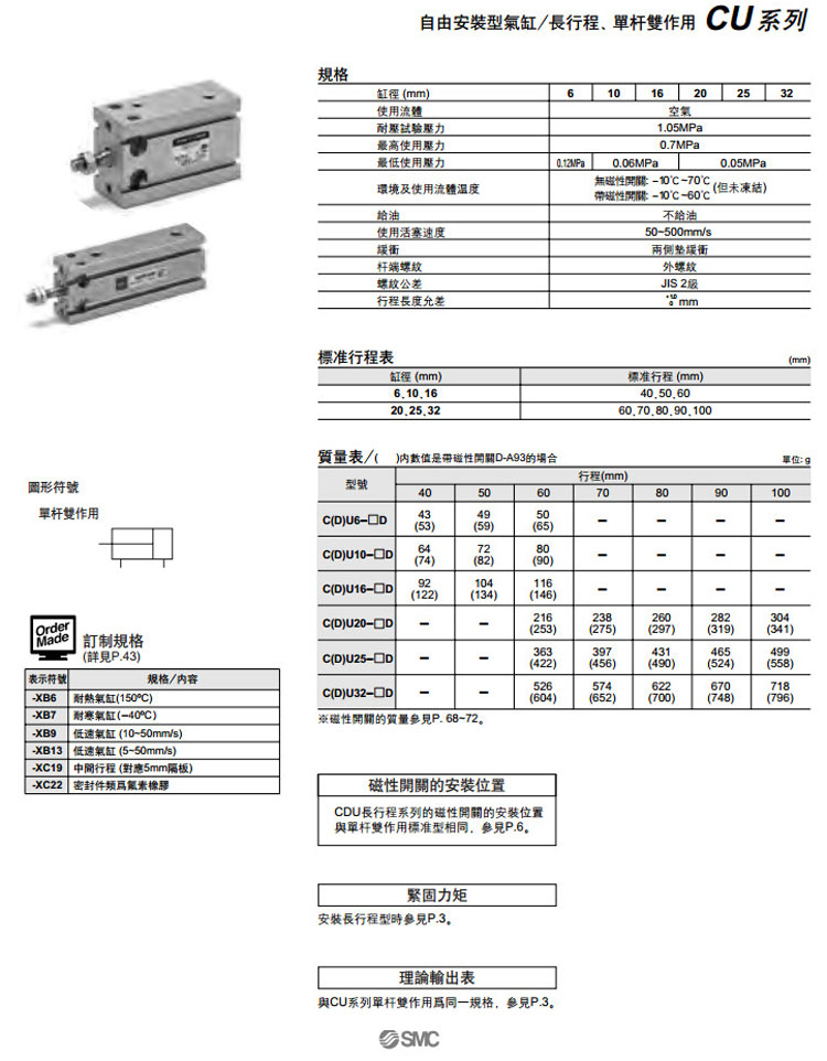 CU6,CU10,CU16,CU20,CU25,CU32,CDU6,CDU10,CDU16,CDU20,CDU25,CDU32,CU6-40D,SMC自由安装型气缸