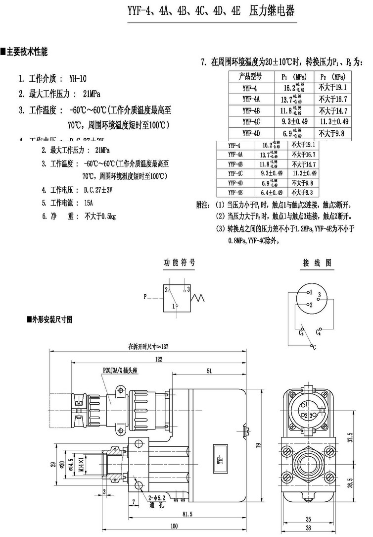 YYF-4,YYF-4A,YYF-4B,YYF-4C,YYF-4D,YYF-4E,压力继电器