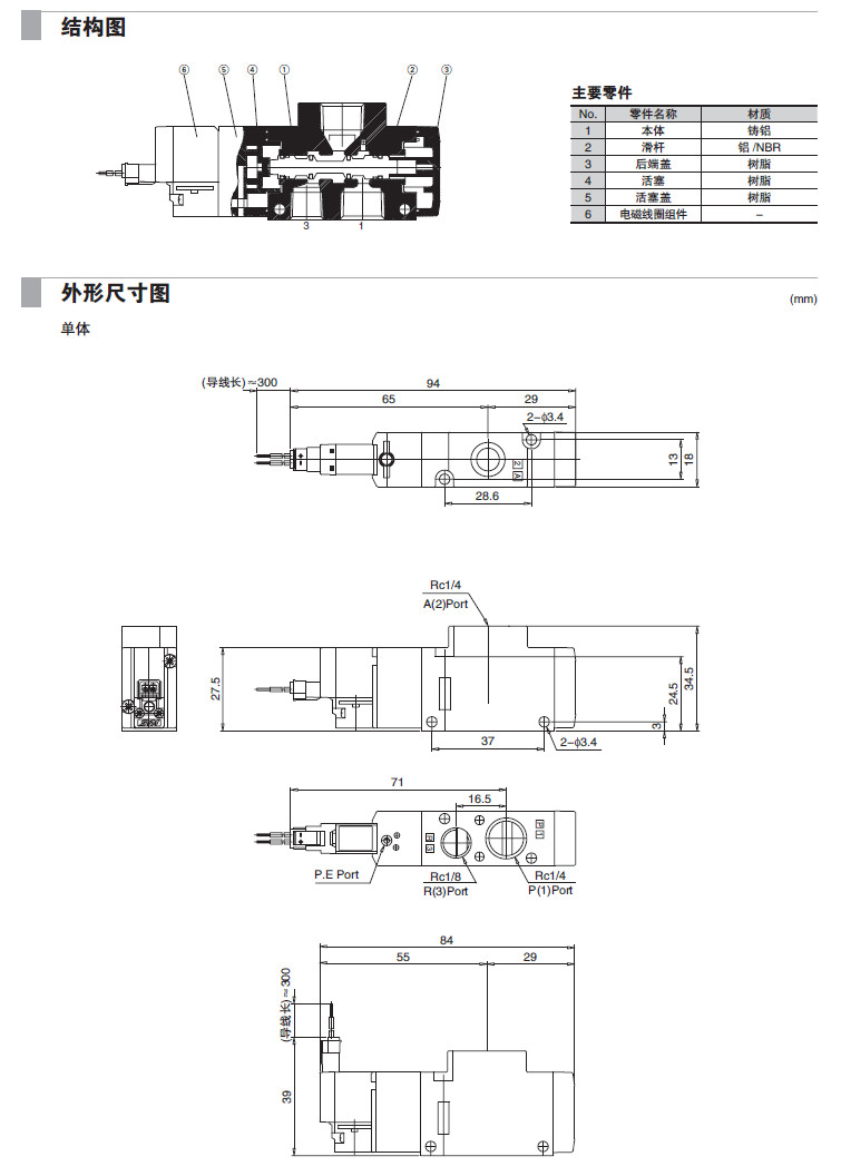 CKV0390-1E-02,CKV0390-2E-02,CKV0390-4E-02,CKV0390-4P-02,3 通先导式电磁阀