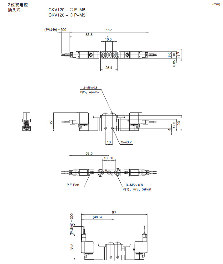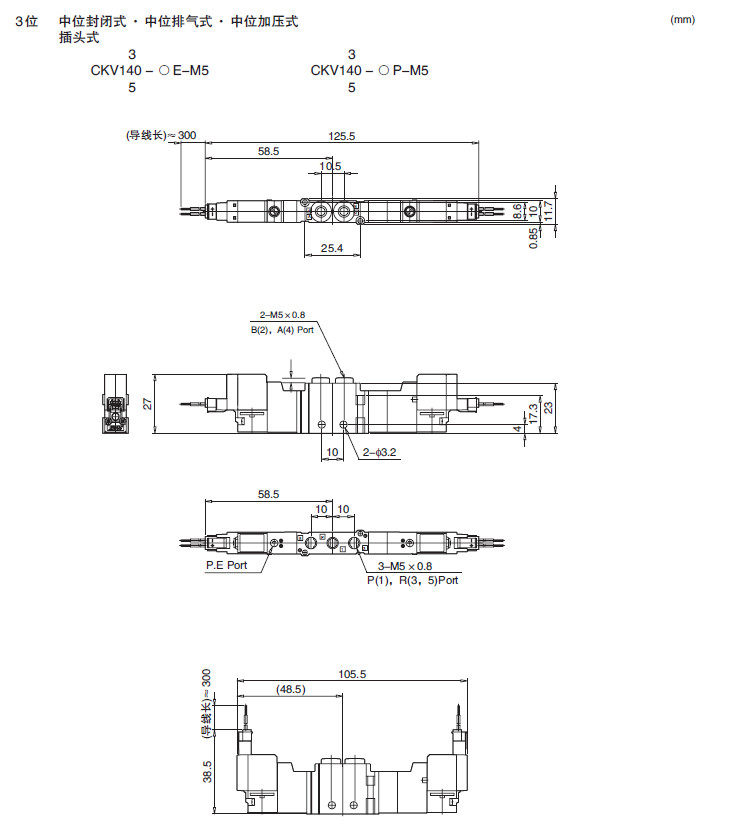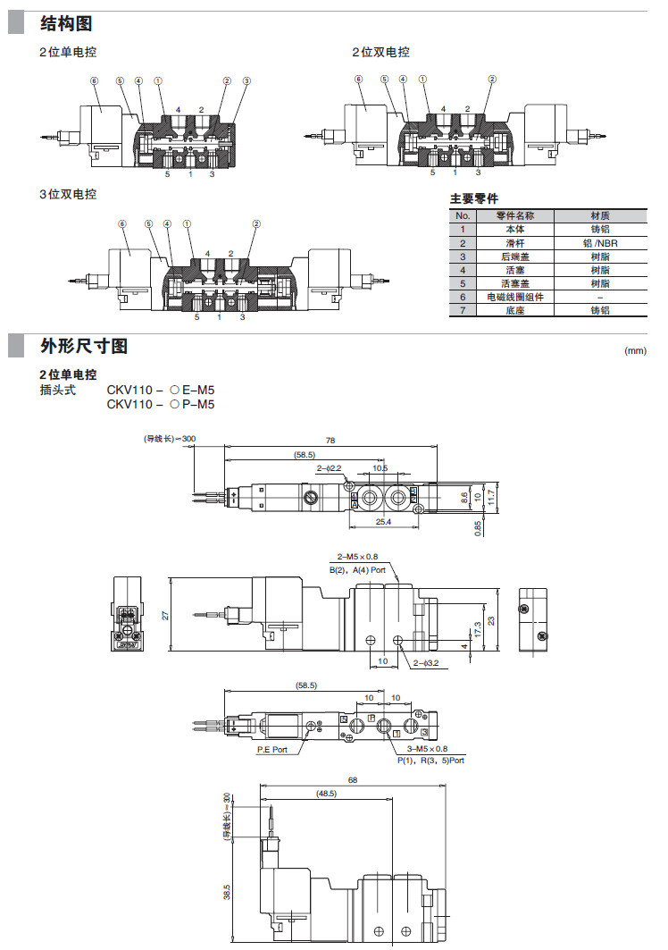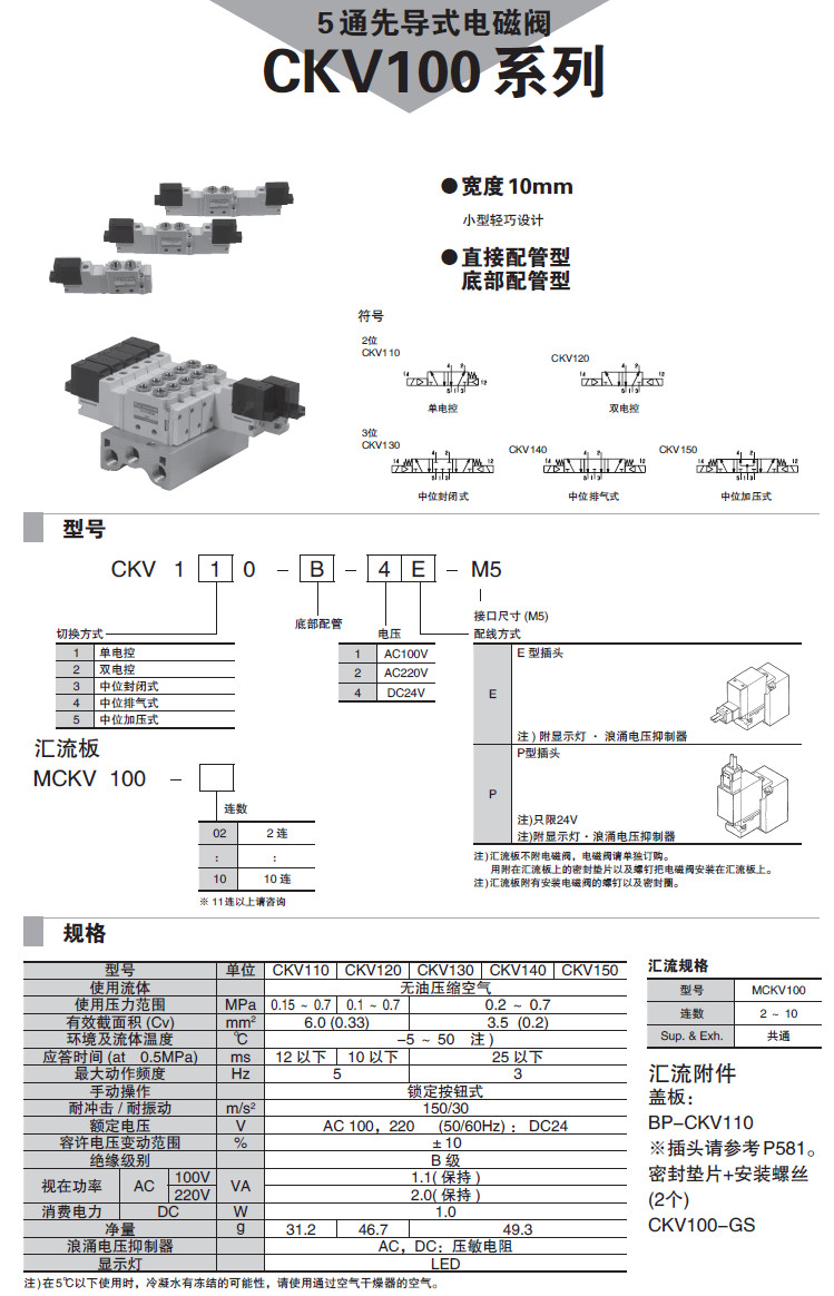 CKV110-B-1E,CKV120-B-2E,CKV130-B-4E,CKV140-B-4P,CKV150-B-1E,5通先导式电磁阀