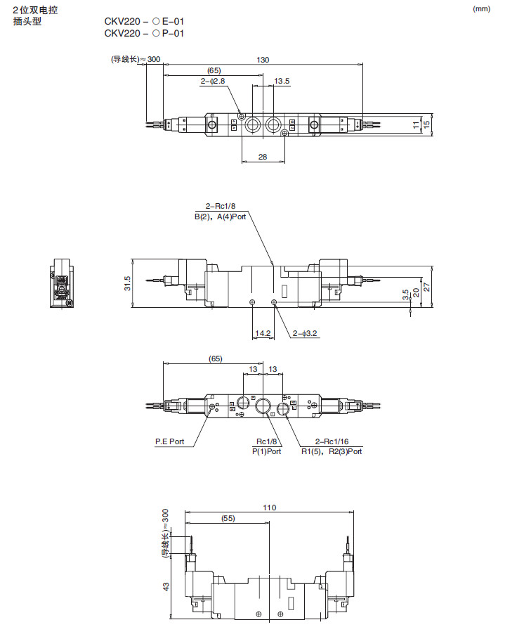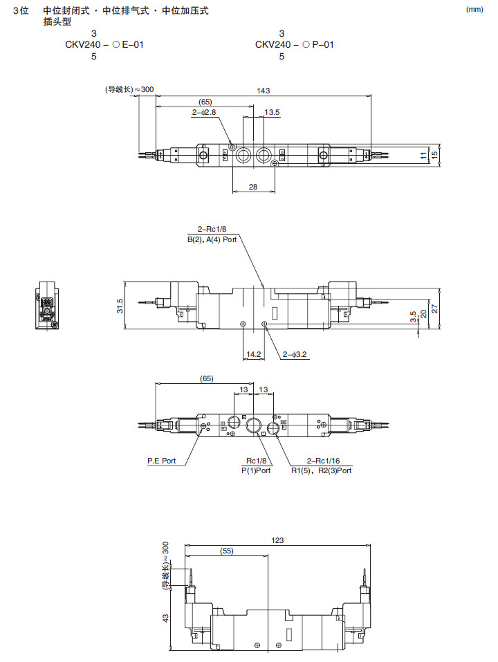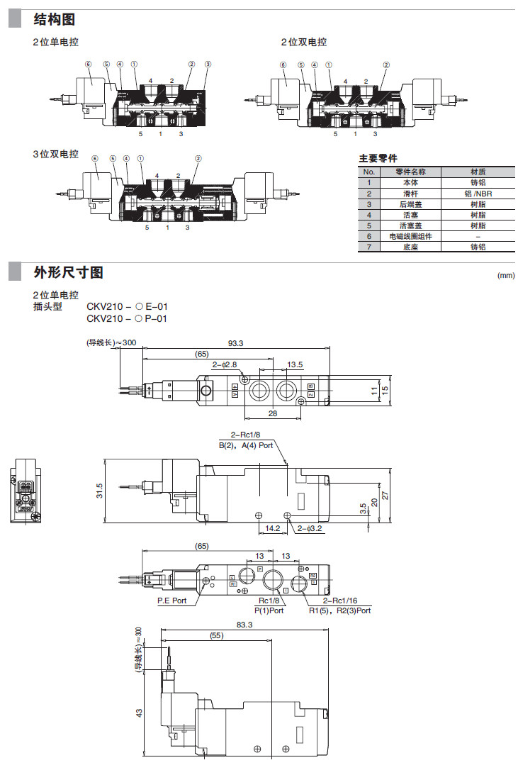 CKV210-1E,CKV220-2E,CKV230-4E,CKV240-4P,CKV250-1E,5通先导式电磁阀