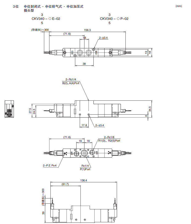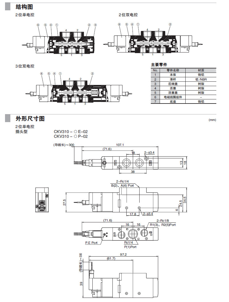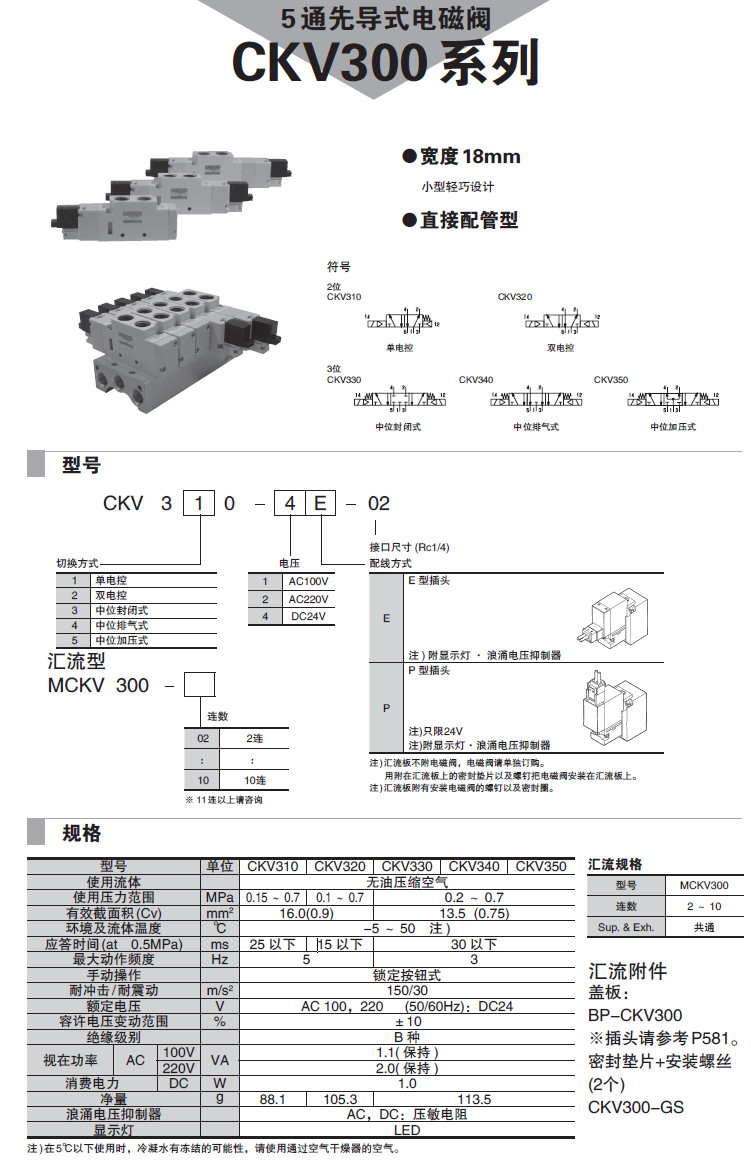 CKV310-1E,CKV320-2E,CKV330-4E,CKV340-4P,CKV350-1E,5通先导式电磁阀