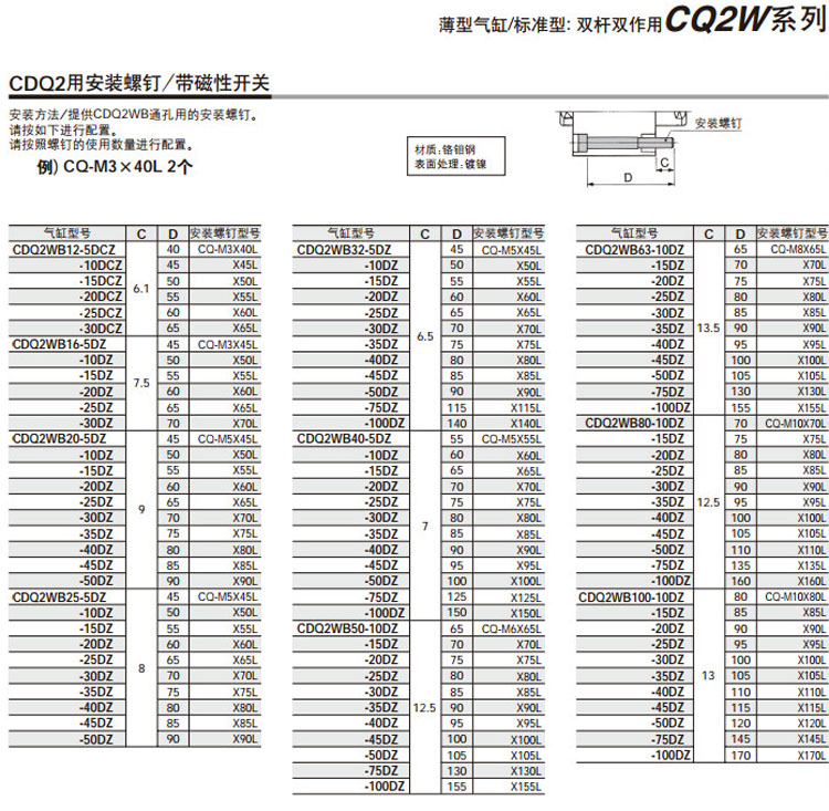 CDQ2WB100-20,CDQ2WL12-20,CDQ2WL16-20,CDQ2WL20-20,CDQ2WL25-20,CDQ2WL32-20,CDQ2WL40-20,CDQ2WL50-20,CDQ2WL63-20,