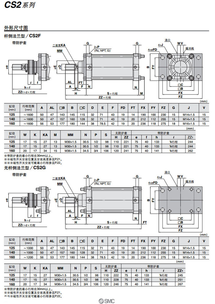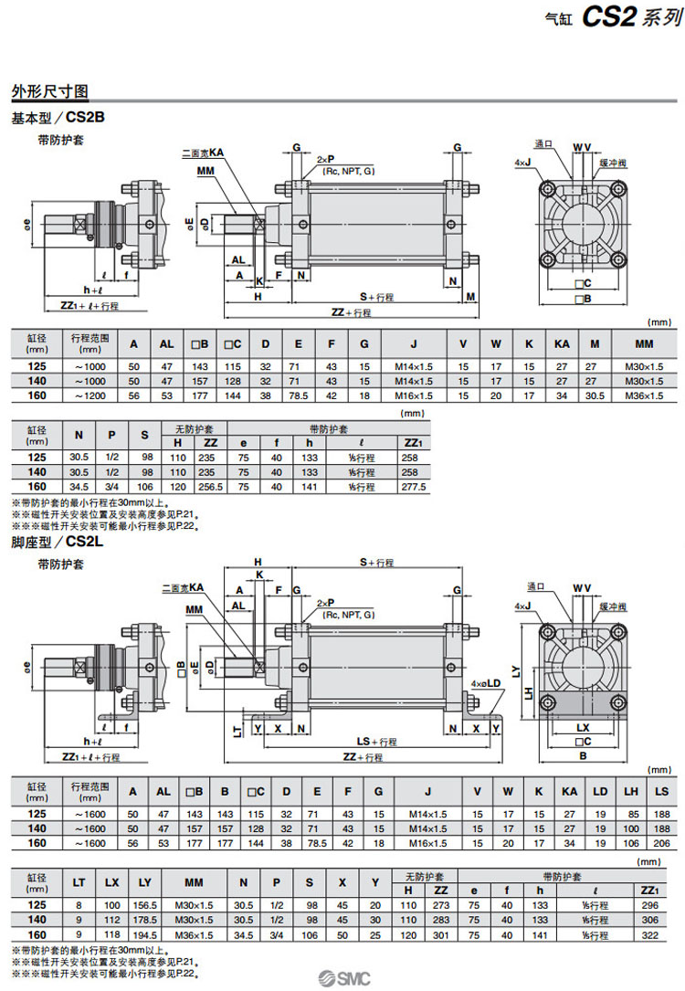 CDS2B125-300,CDS2L125-300,CDS2F125-300,CDS2G125-300,CDS2C125-300,CDS2D125-300,CDS2T125-300,SMC低摩擦型气缸