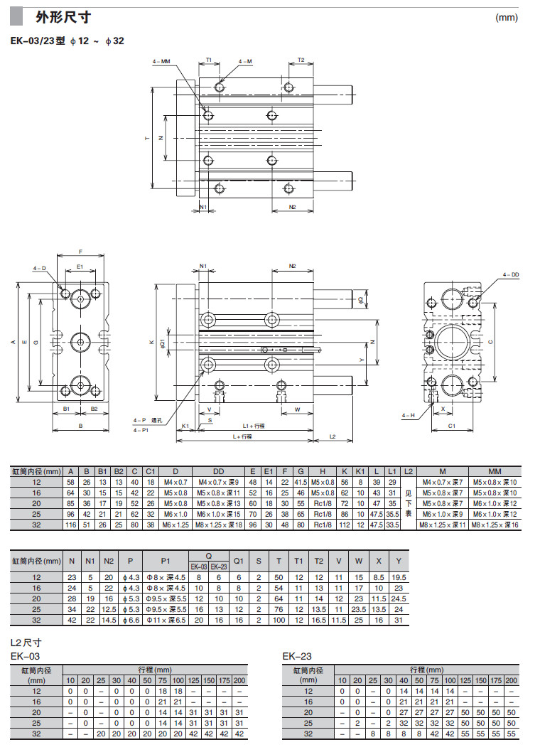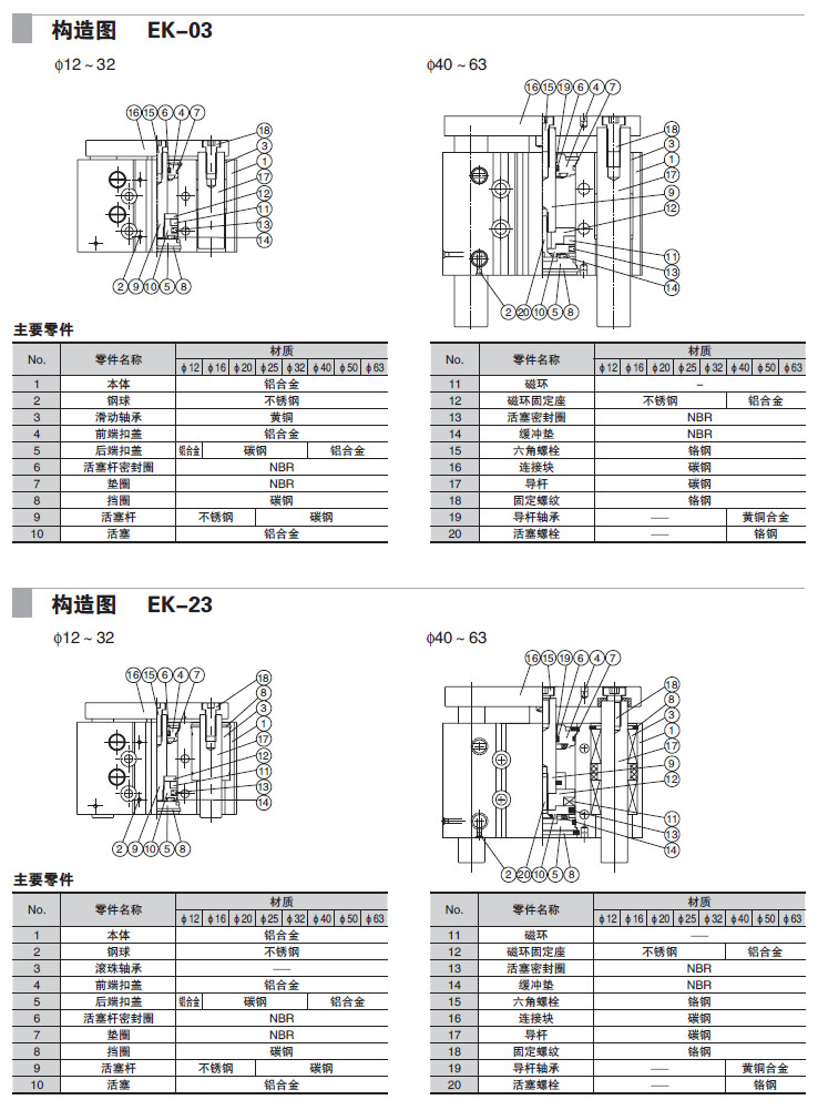 EK-03M-12,EK-03M-16,EK-03M-20,EK-23M-25,EK-23M-32,EK-23M-40,EK-23M-50,双导杆气缸
