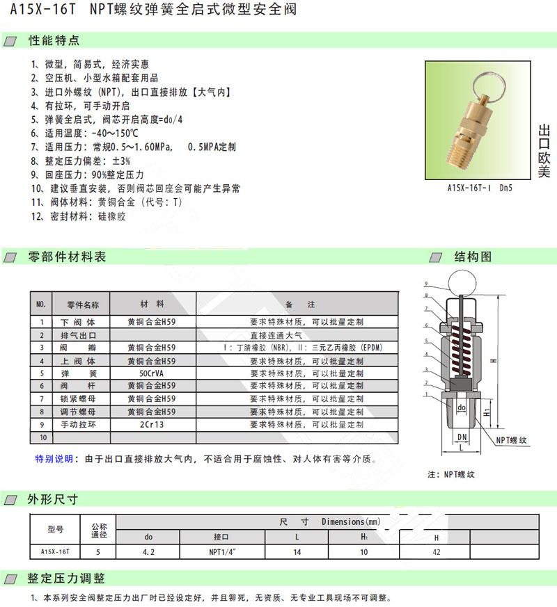 A15X-16T-DN5,弹簧全启式微型安全阀