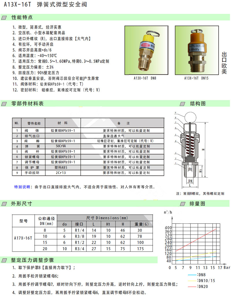 A13X-16T-DN8,A13X-16T-DN10,A13X-16T-DN15,A13X-16T-DN20,弹簧式微型安全阀