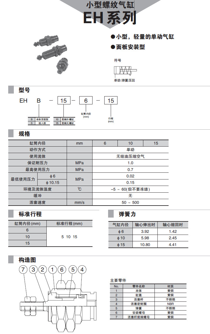 EHB-6-5,EHB-6-10,EHB-10-10,EHB-15-5,EHS-6-10,EHS-10-15,EHS-15-10,小型螺纹气缸