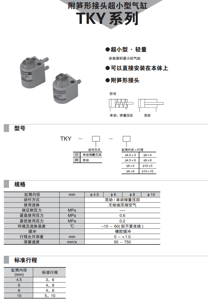 TKY-O-4.5*3,TKY-O-4.5*6,TKY-O-6*4,TKY-O-6*8,TKY-W-4.5*3,超小型气缸
