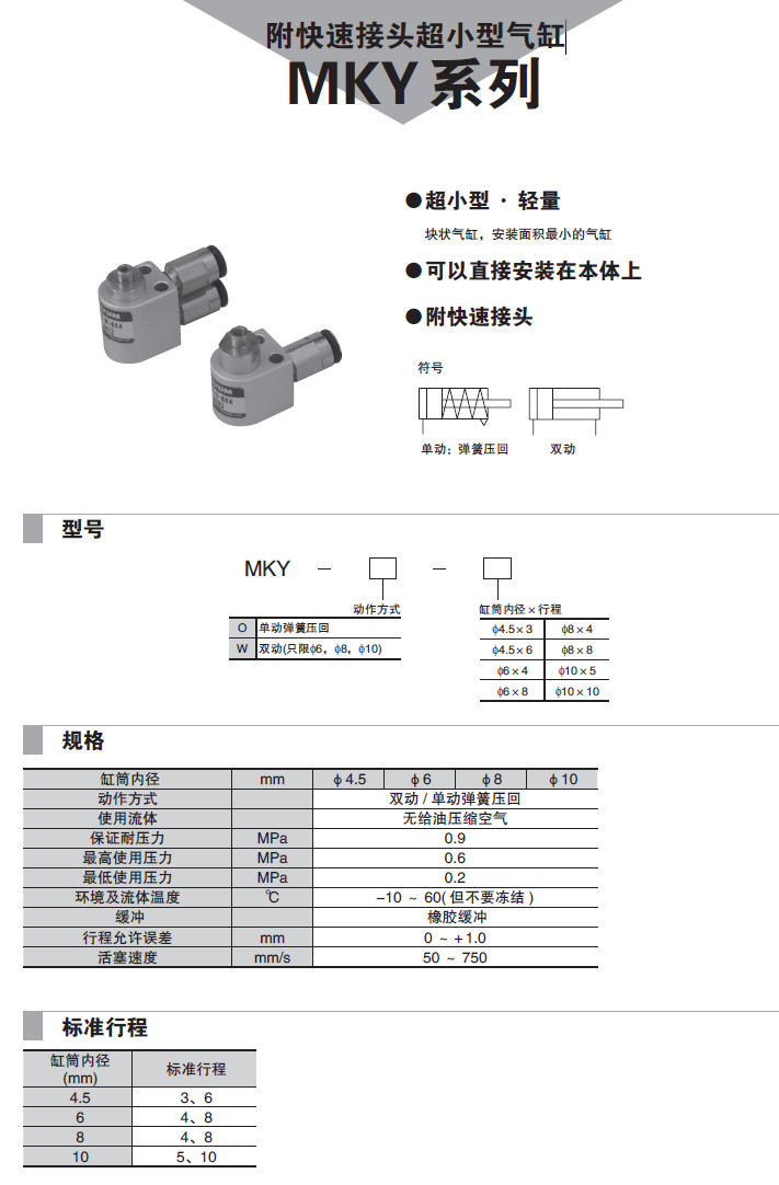 MKY-O-4.5×3,MKY-O-4.5×6,MKY-O-6×4,MKY-W-6×4,MKY-W-6×8,超小型气缸