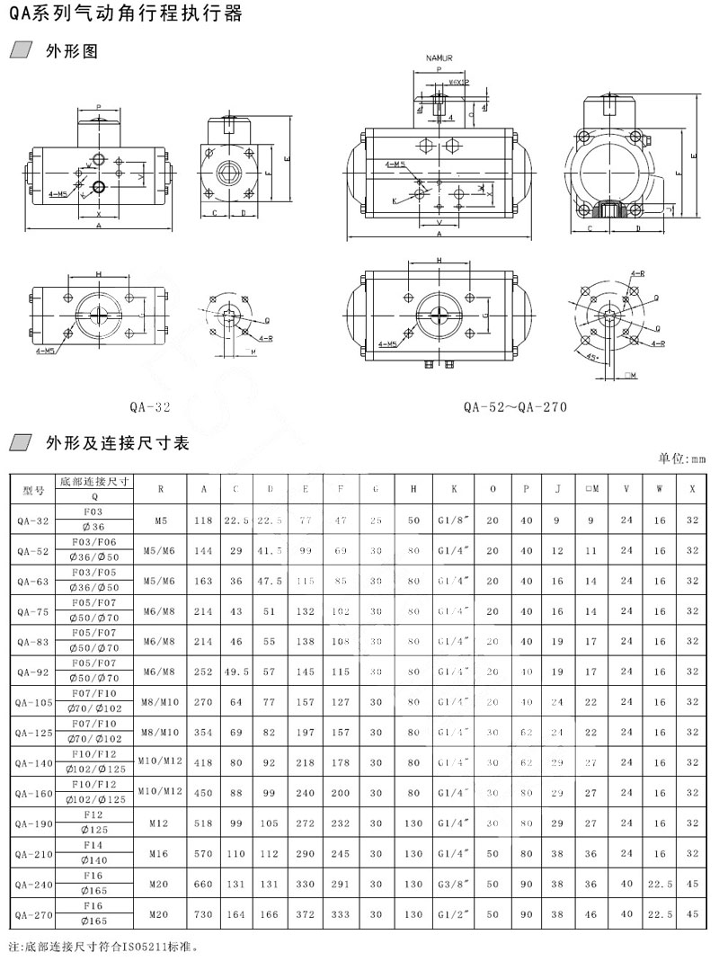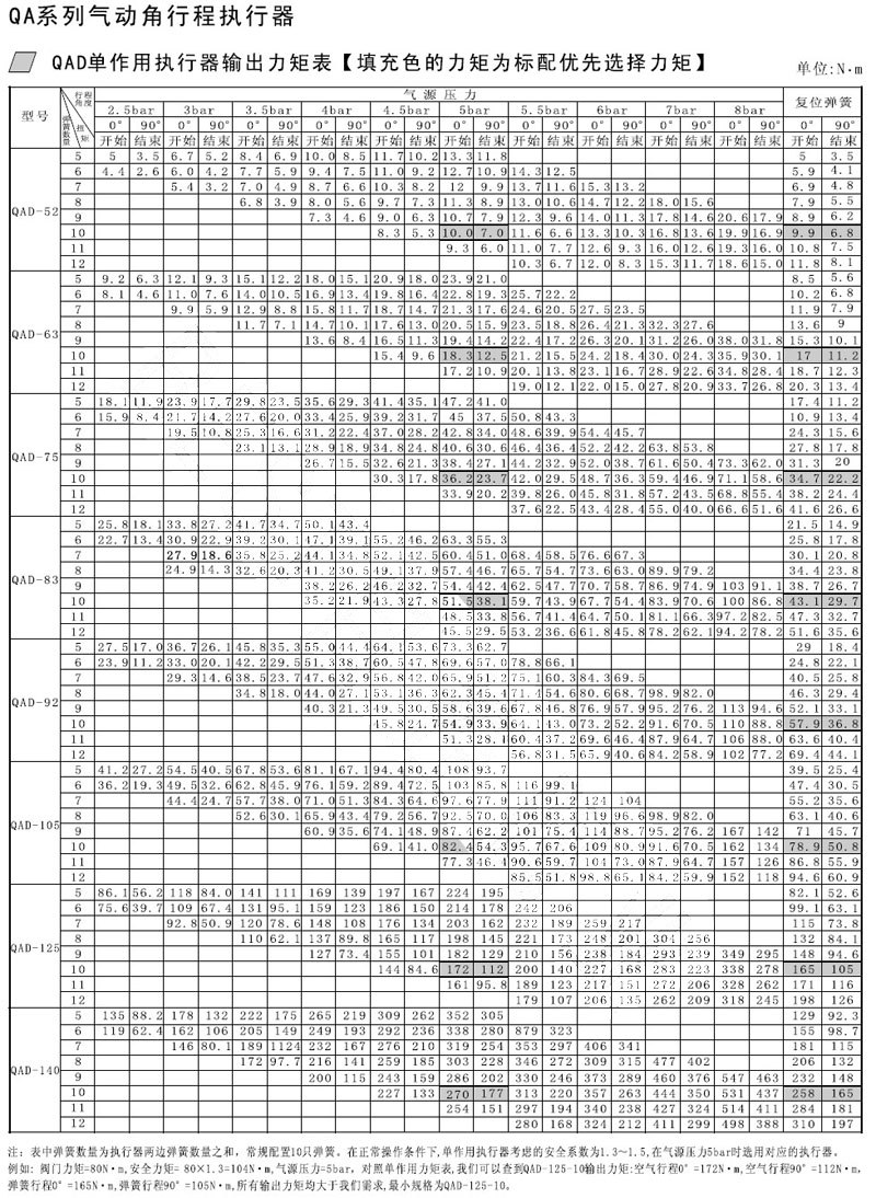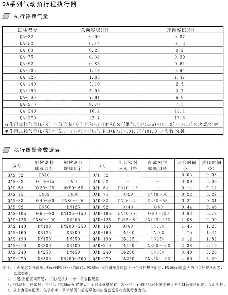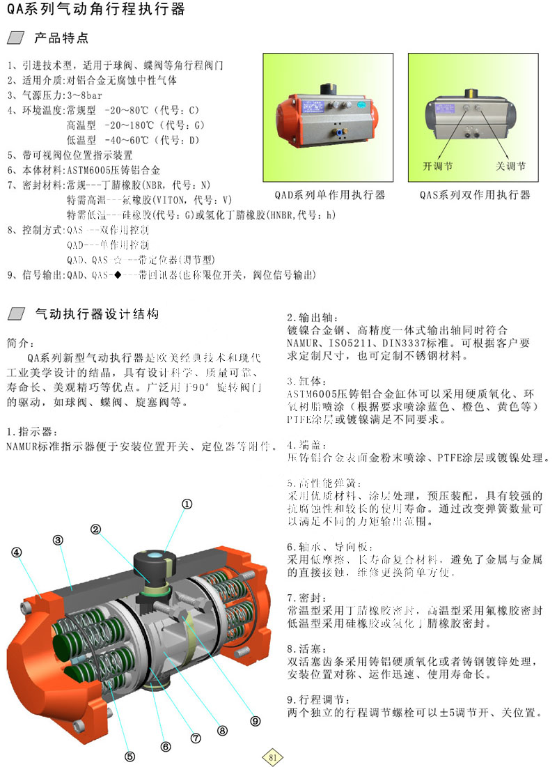 QAD-52,QAD-63,QAS-63,QAS-75,QA-83,QA-92,QA-105,气动执行器