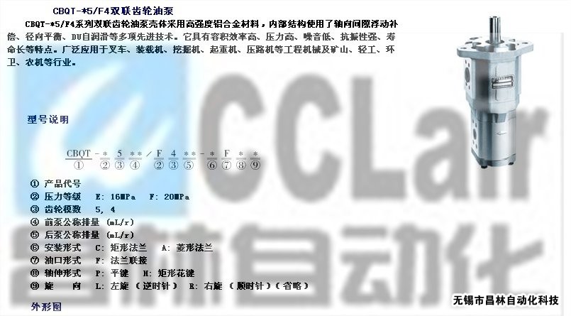 CBQT-E550/F425-*F**,CBQT-E550/F432-*F**,双联齿轮油泵