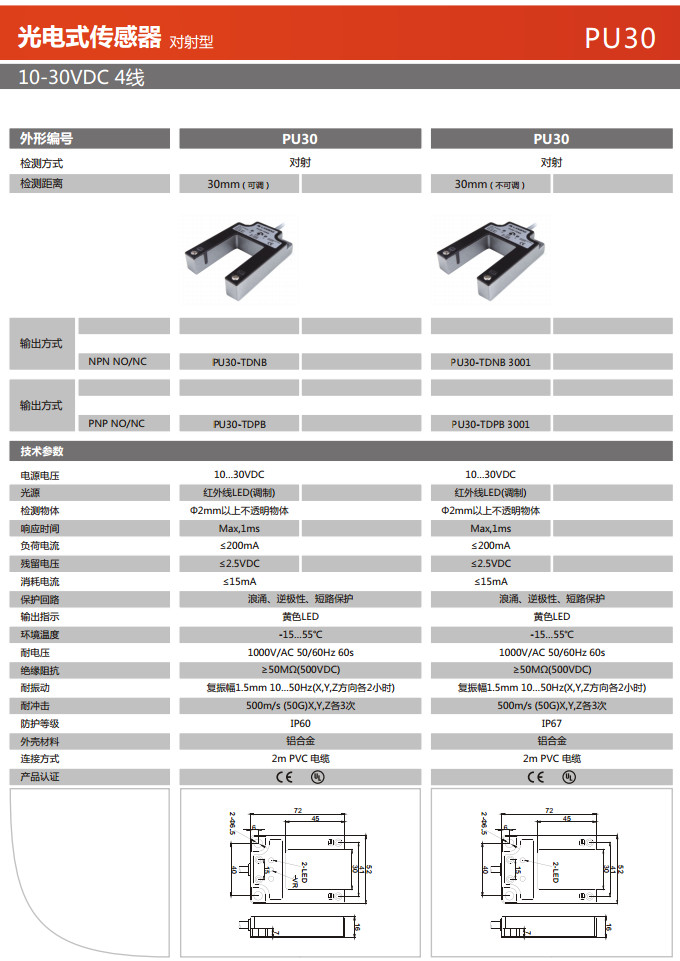 PU30-TDNB,PU30-TDPB,PU30-TDNB 3001,PU30-TDPB 3001,光电式传感器