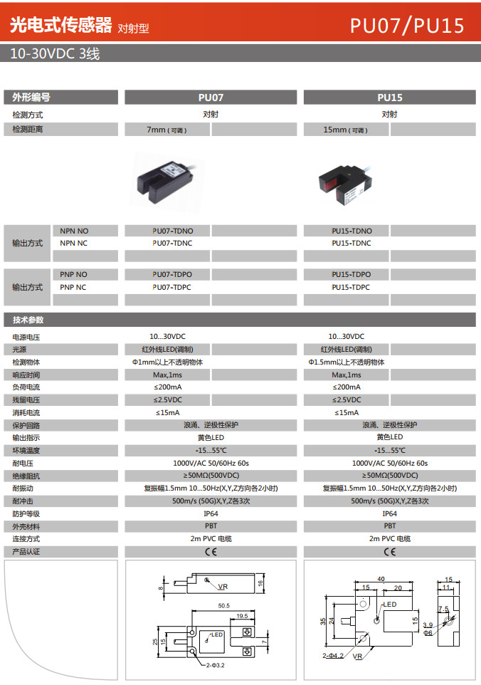 PU07-TDNO,PU07-TDNC,PU07-TDPO,PU07-TDPC,PU15-TDNO,PU15-TDNC,PU15-TDPO,PU15-TDPC,光电式传感器