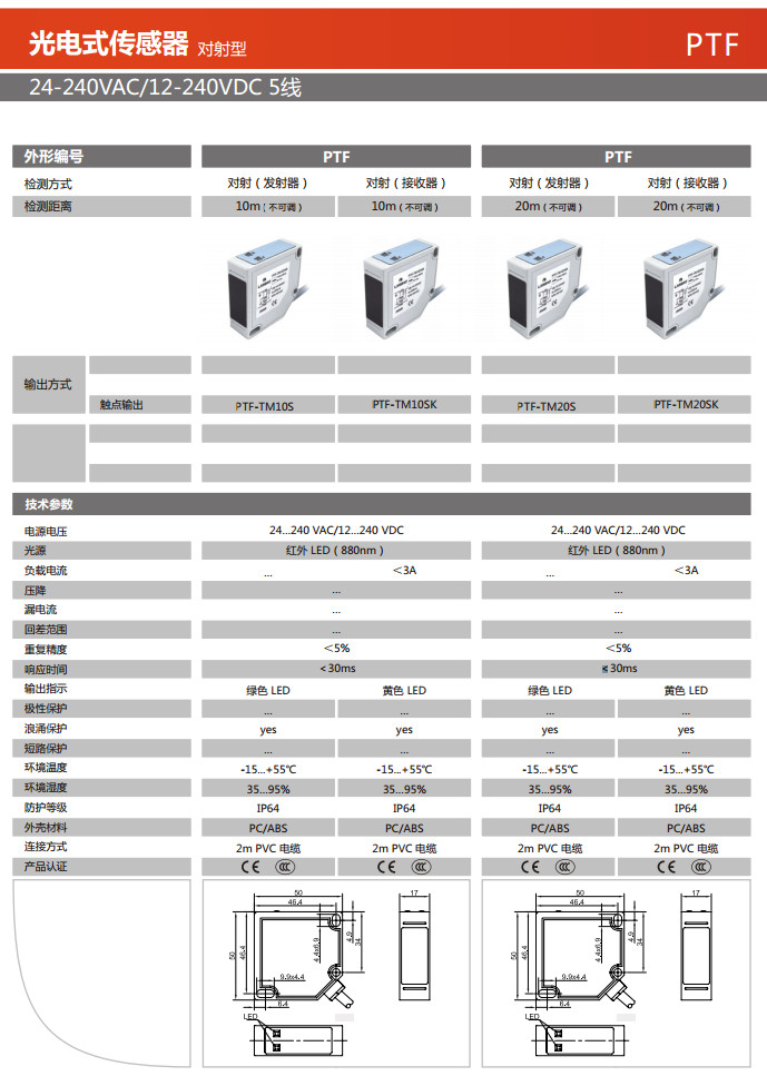 PTF-TM10S,PTF-TM10SK,PTF-TM20S,PTF-TM20SK,光电式传感器
