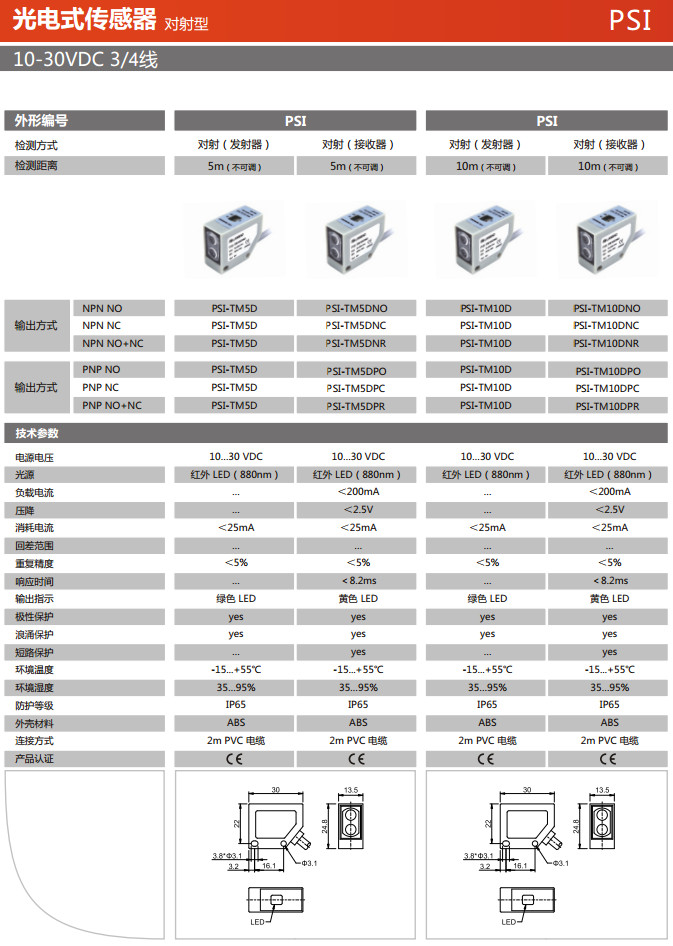 PSI-TM5D,PSI-TM5DNO,PSI-TM5DNC,PSI-TM5DNR,PSI-TM5DPO,PSI-TM5DPC,PSI-TM5DPR,PSI-TM10D,光电式传感器