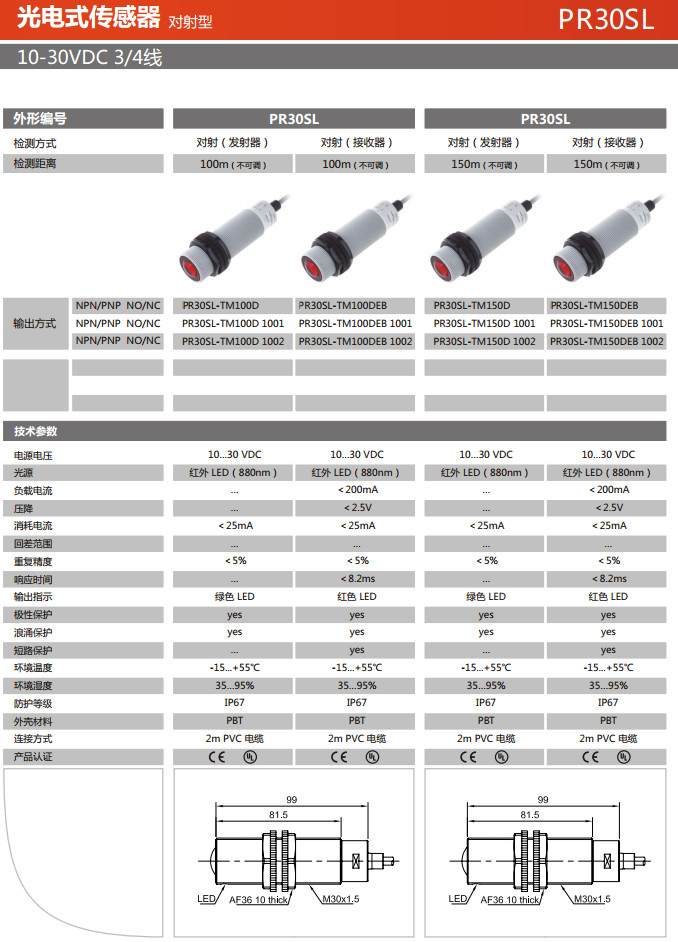 PR30SL-TM100D,PR30SL-TM100DEB,PR30SL-TM150D,PR30SL-TM150DEB,光电式传感器