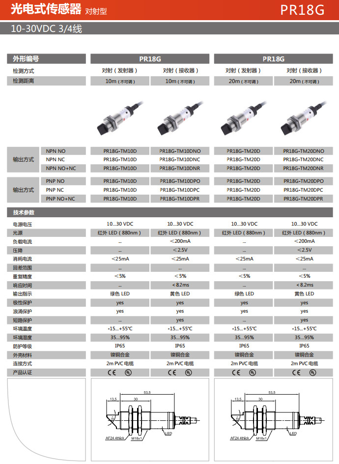 PR18G-TM10D,PR18G-TM10DNO,PR18G-TM10DNC,PR18G-TM10DNR,PR18G-TM10DPO,PR18G-TM10DPC,光电式传感器