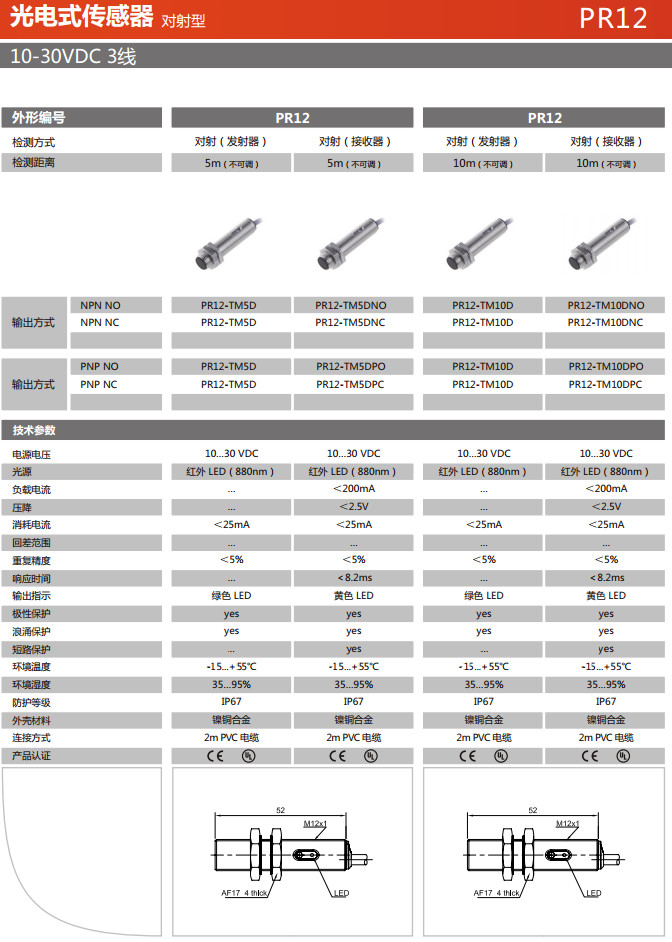PR12-TM5D,PR12-TM5DNO,PR12-TM5DNC,PR12-TM5DPO,PR12-TM5DPC,PR12-TM10D,PR12-TM10DNO,光电式传感器