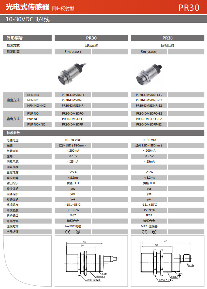 PR30-DM5DNO,PR30-DM5DNC,PR30-DM5DNR,PR30-DM5DPO,PR30-DM5DPC,PR30-DM5DPR,PR30-DM5DNO-E2,光电式传感器