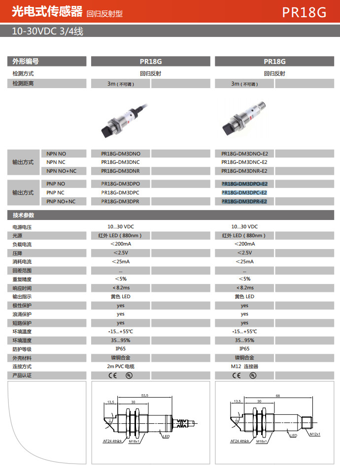 PR18G-DM3DNO,PR18G-DM3DNC,PR18G-DM3DNR,PR18G-DM3DPO,PR18G-DM3DPC,PR18G-DM3DPR,光电式传感器