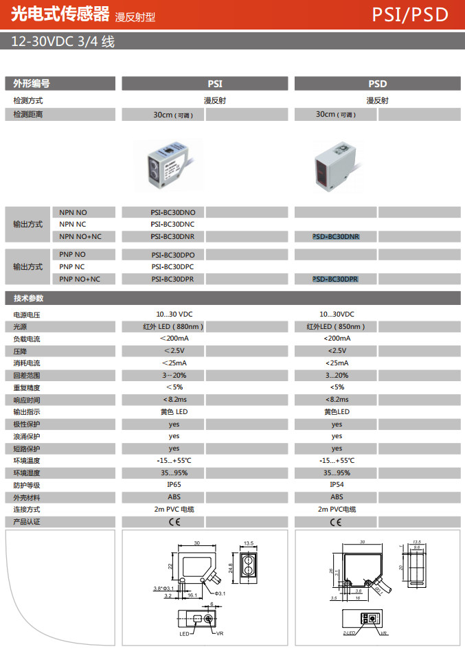 PSI-BC30DNO,PSI-BC30DNC,PSI-BC30DNR,PSI-BC30DPO,PSI-BC30DPC,PSI-BC30DPR,PSD-BC30DNR,PSD-BC30DPR,光电式传 |