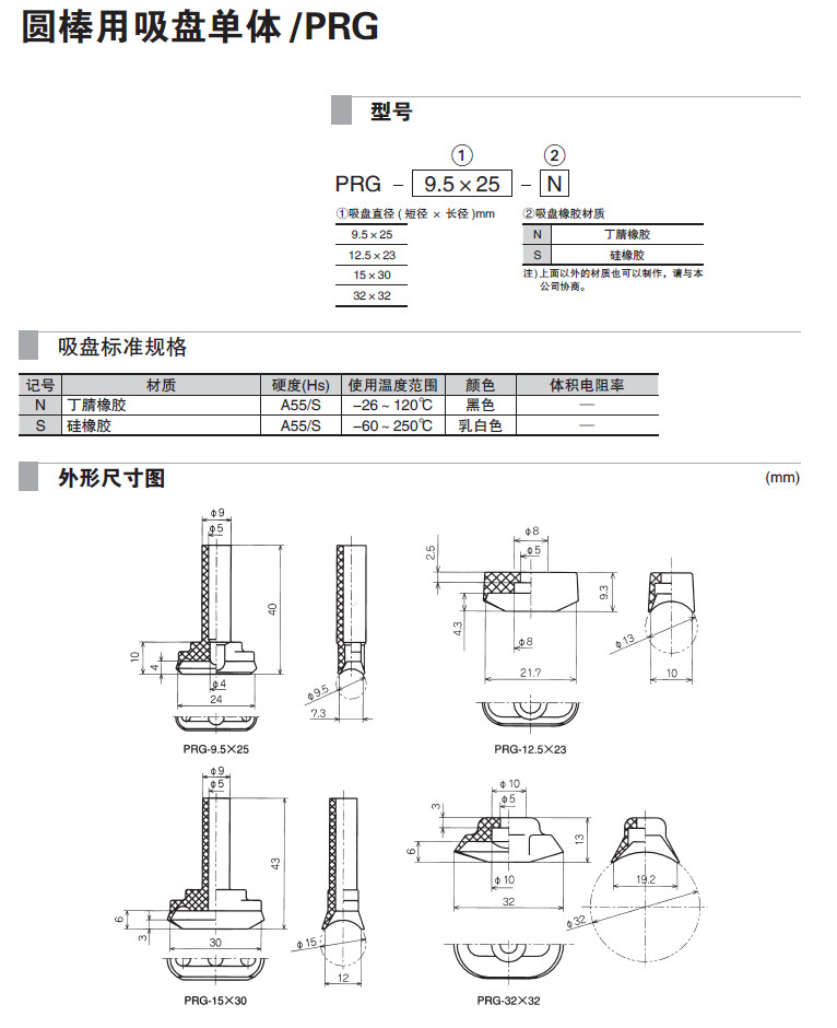 PRG-9.5*25-N,PRG-12.5*23-N,PRG-15*30-N,PRG-32*32-N,PRG-9.5*25-S,PRG-12.5*23-S,PRG-15*30-S,PRG-32*32-S,吸盘
