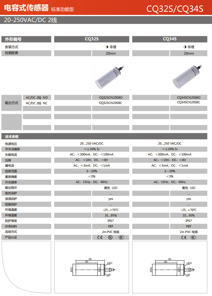 CQ32SCN20SBO,CQ32SCN20SBC,CQ34SCN20SBO,CQ34SCN20SBC,电容式传感器
