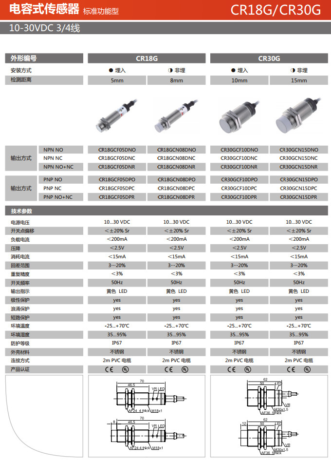 CR18GCF05DNO,CR18GCF05DNC,CR18GCF05DNR,CR30GCF10DNO,CR30GCF10DNC,CR30GCF10DNR,电容式传感器