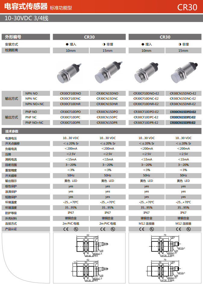 CR30CF10DNO,CR30CF10DNC,CR30CF10DNR,CR30CN15DNO,CR30CN15DNC,CR30CN15DNR,电容式传感器