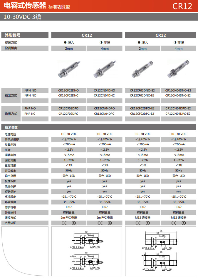 CR12CF02DNO,CR12CF02DNC,CR12CN04DNO,CR12CN04DNC,CR12CF02DNO-E2,CR12CF02DNC-E2,电容式传感器