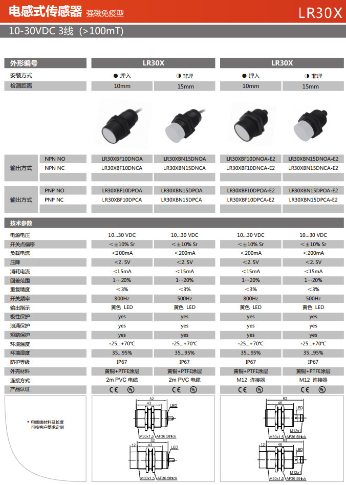 LR30XBF10DNOA,LR30XBF10DNCA,LR30XBF10DPOA,LR30XBF10DPCA,LR30XBN15DNOA,电感式传感器