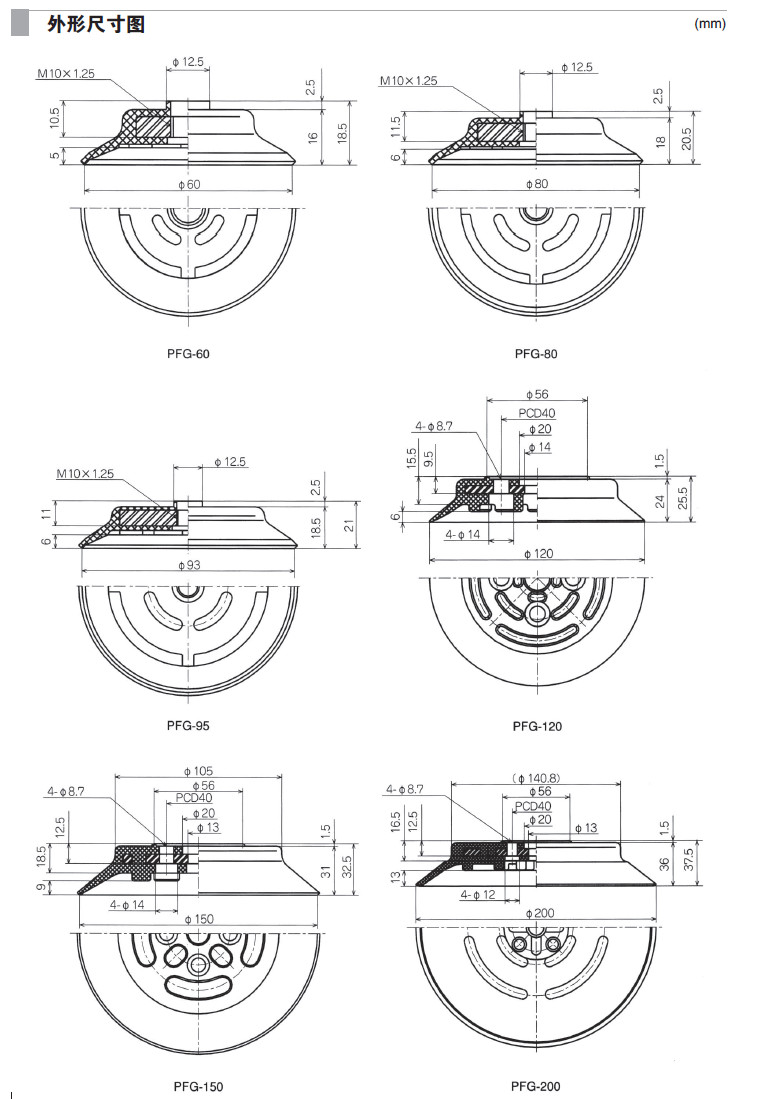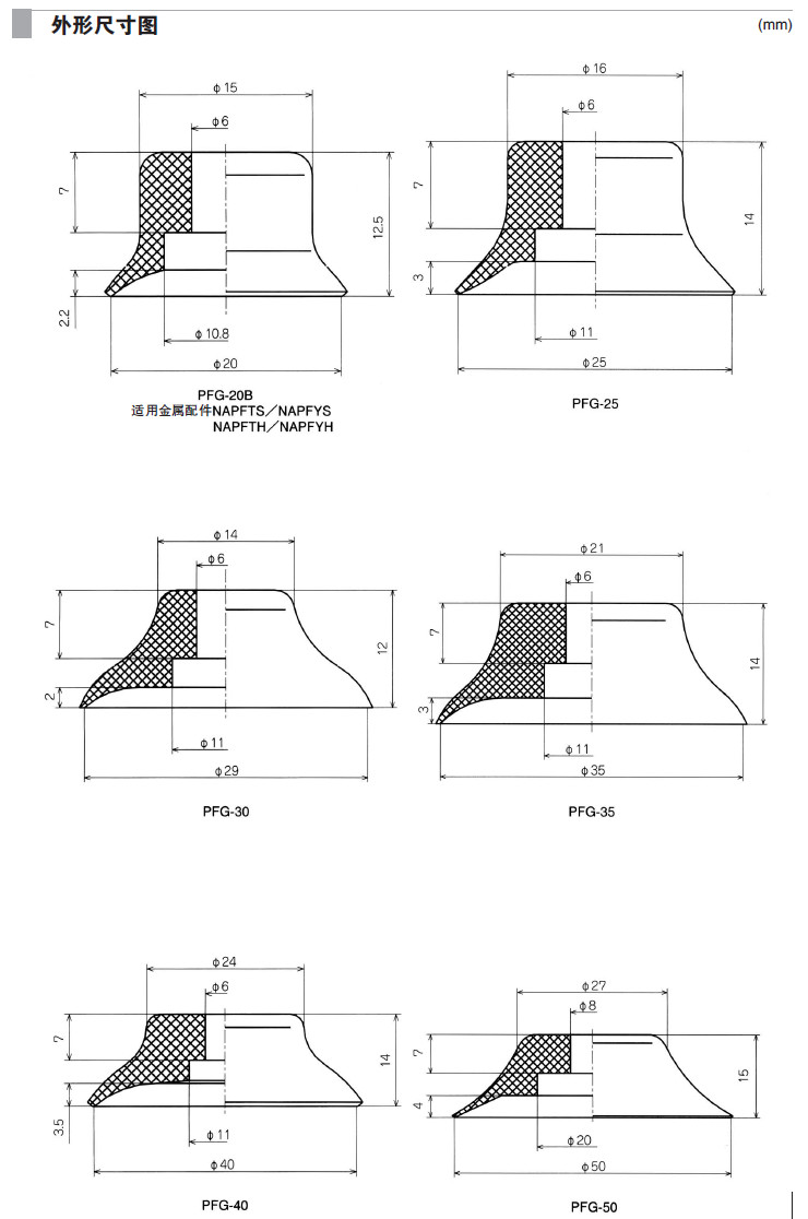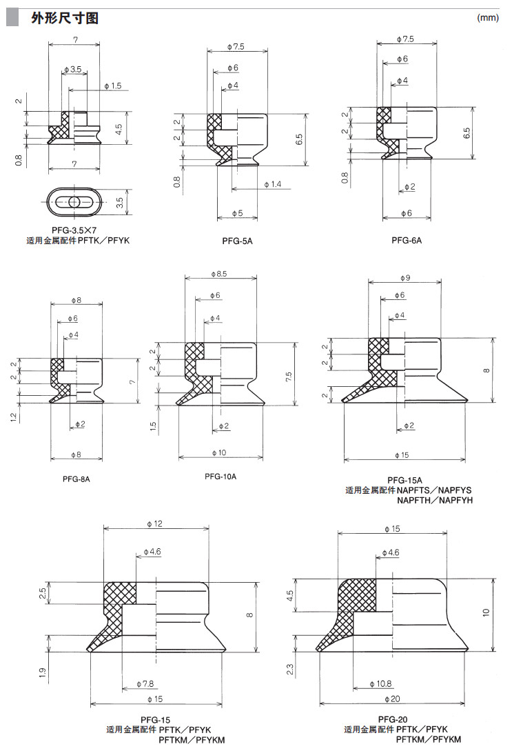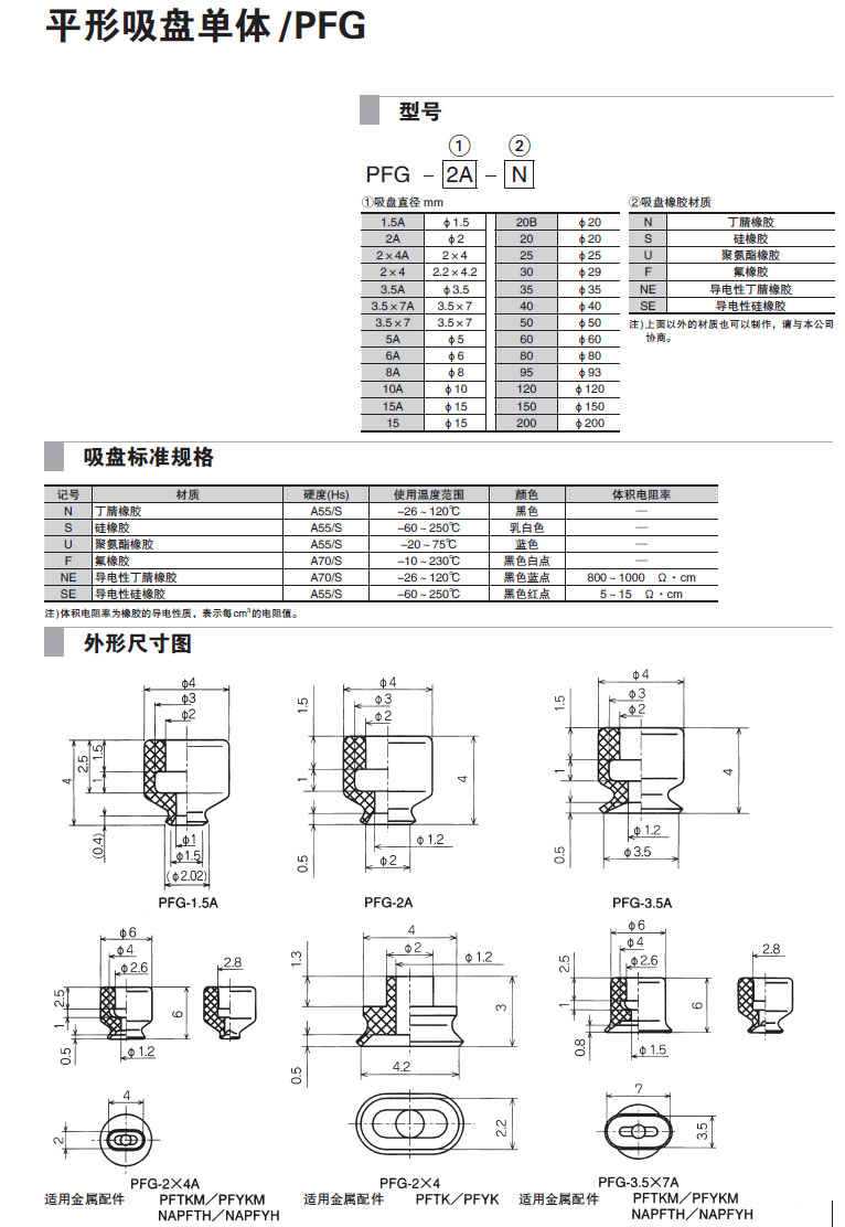 PFG-1.5A,PFG-2A,PFG-2*4A,PFG-3.5A,PFG-3.5*7,PFG-5A,PFG-6A,PFG-8A,PFG-15,吸盘