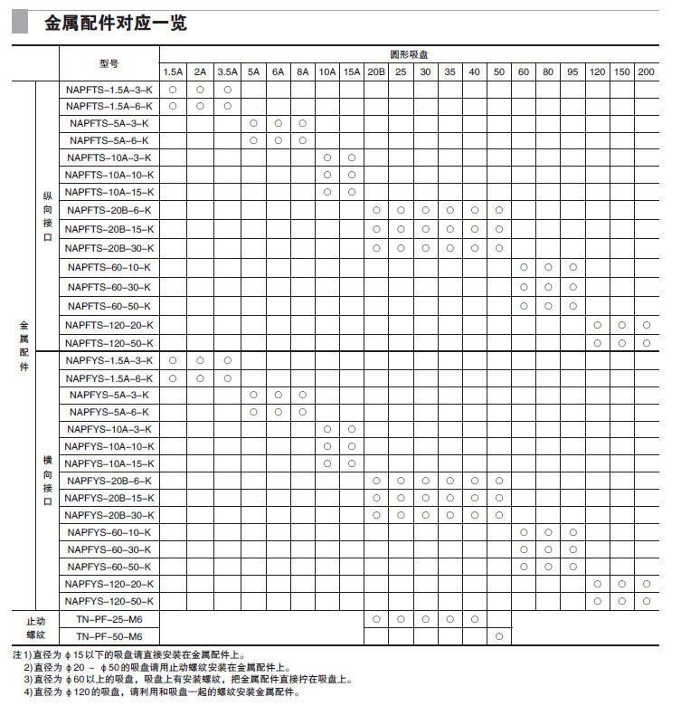 APFTS-1.5A,NAPFTS-2A,NAPFTS-25,NAPFYS-8A,NAPFYS-25,NAPFYS-2A,吸盘