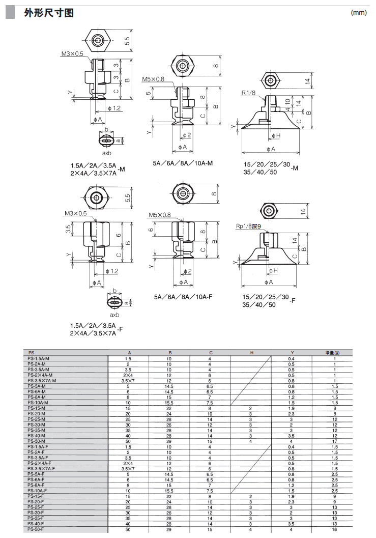 PS-1.5A-M,PS-2A-M,PS-3.5A-M,PS-2*4A-M,PS-3.5*7A-M,PS-5A-M,PS-6A-M,吸盘