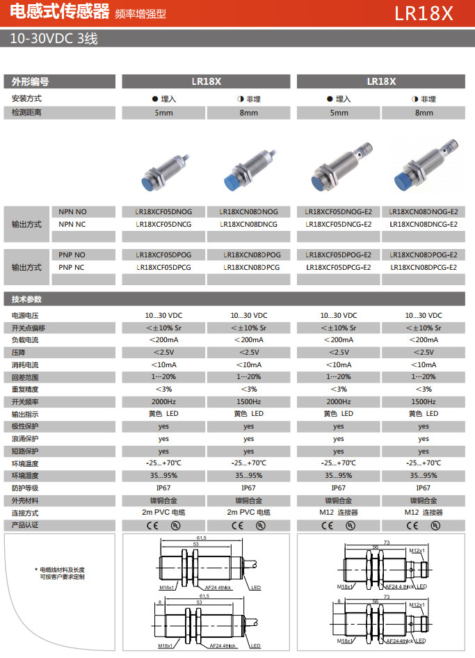 LR18XCF05DNOG,LR18XCF05DNCG,LR18XCF05DPOG,LR18XCF05DPCG,LR18XCN08DNOG,电感式传感器