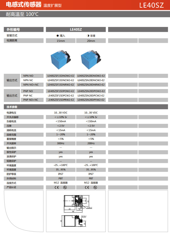 LE40SZSF15DNOW2-E2,LE40SZSF15DNCW2-E2,LE40SZSF15DNRW2-E2,LE40SZSF15DPOW2-E2,电感式传感器
