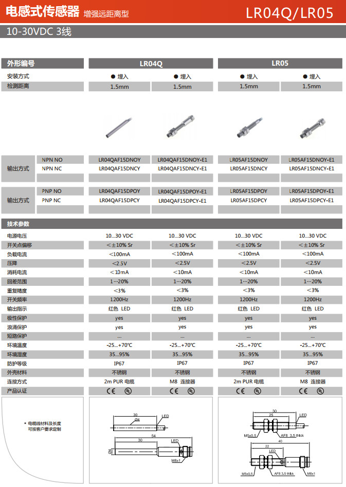 LR04QAF15DNOY,LR04QAF15DNCY,LR04QAF15DNOY-E1,LR04QAF15DNCY-E1,LR05AF15DNOY,电感式传感器