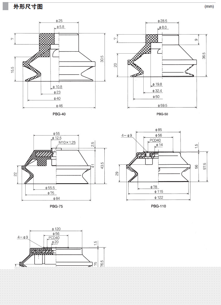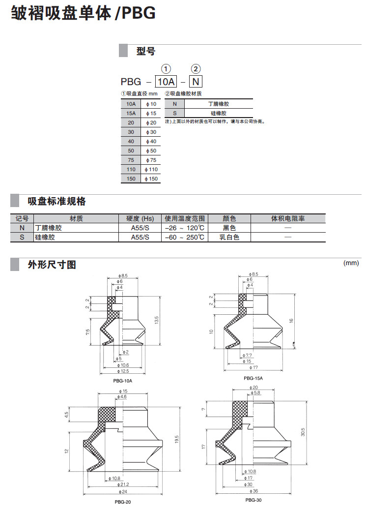 PBG-10A,PBG-15A,PBG-20,PBG-30,PBG-40,PBG-50,PBG-75,PBG-110,PBG-150,吸盘